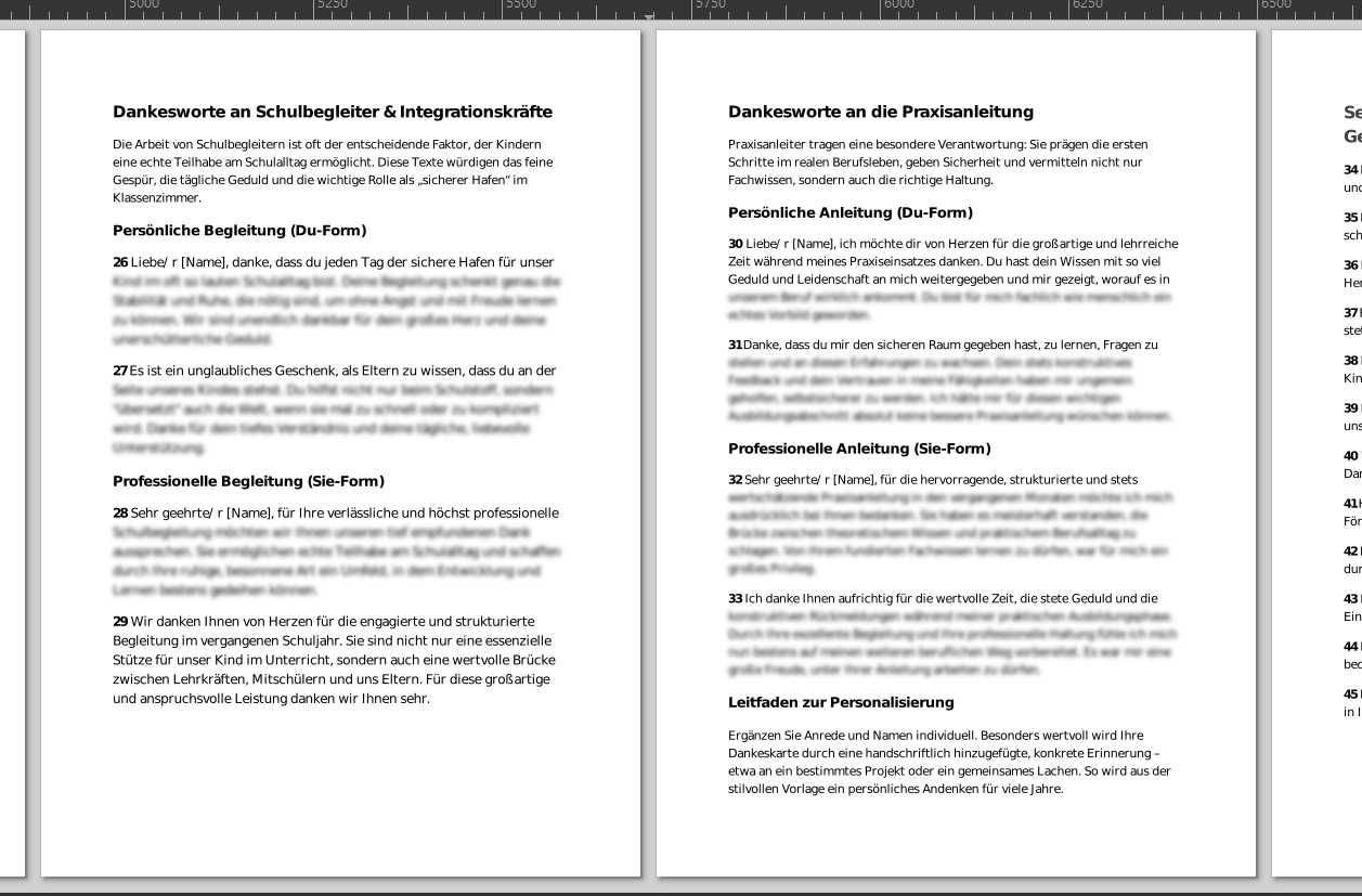 • 2x Besonders wertschätzende Texte: Wenn „Danke“ allein nicht ausreicht – tiefgründige Worte für außergewöhnlichen Einsatz.