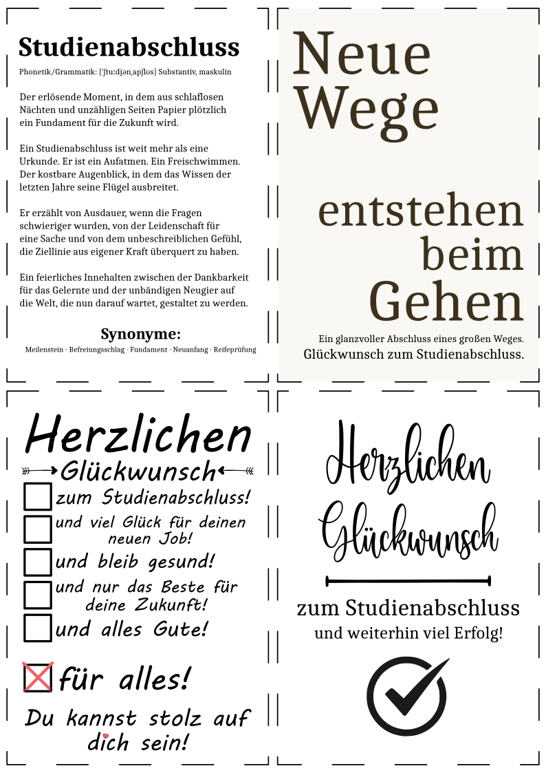 Die perfekte Gratulation zum Studienabschluss – ohne Design-Stress und Schreibblockaden.