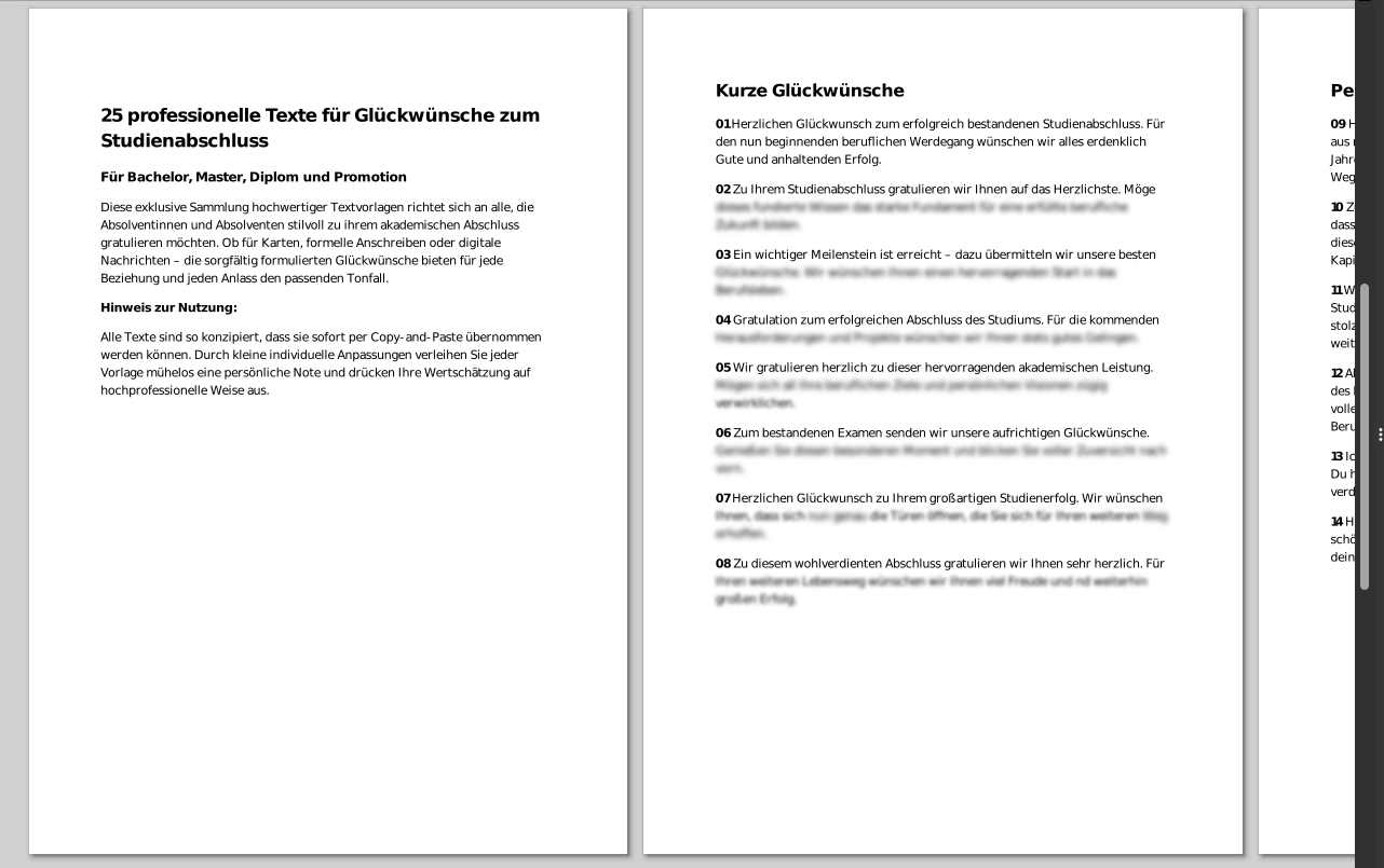 Mit diesem digitalen Komplettpaket erhalten Sie alles, was Sie für stilvolle Glückwünsche zum bestandenen Abschluss benötigen. Ob für das Bachelor- oder Masterzeugnis, das Staatsexamen oder die Promotion: Unsere Vorlagen sind zeitlos, wertschätzend und hochwertig gestaltet, damit Ihre Anerkennung genau den Respekt ausdrückt, den diese akademische Leistung verdient.